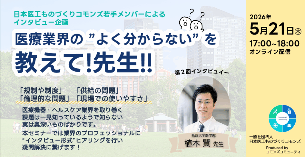 コモンズ若手メンバーによるインタビュー企画 医療業界の“よく分からない”を教えて先生! 「ものづくり企業と医療機関の連携をより活発にするにはどうしたらよいですか?」2026/5/21